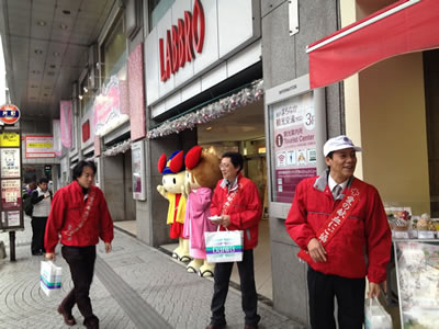 11月18日、ラブロ片町前周辺にて、献血街頭キャンペーンを行いました。当日は献血ルーム「ラブロ」開設26周年キャンペーン開催初日ということで、マスコット「けんけつちゃん」とともにティッシュ配りを行いました。皆様の献血へのご協力に感謝するとともに、今後もご協力をお願いいたします。