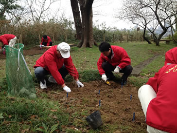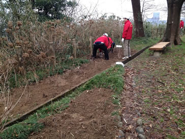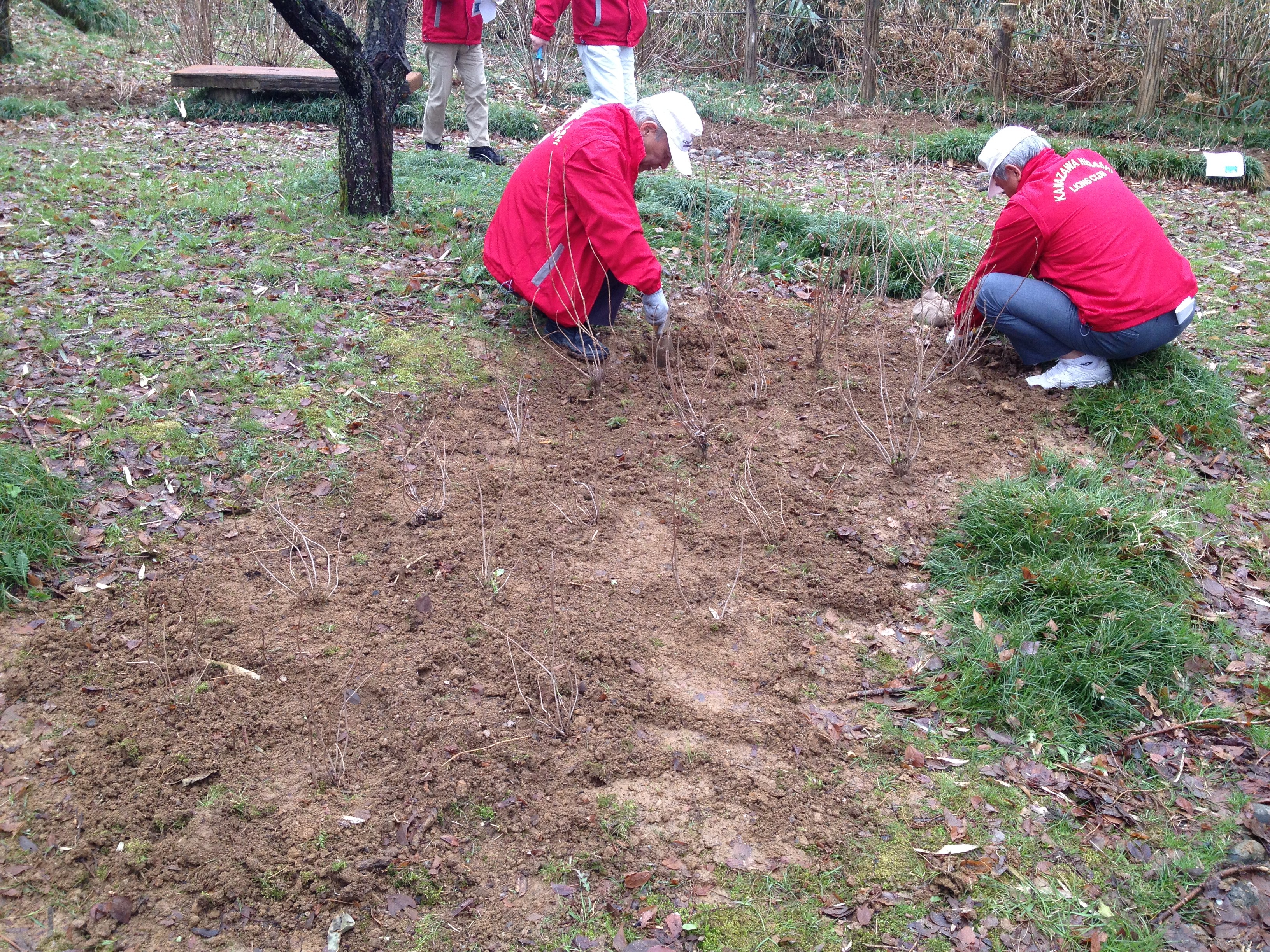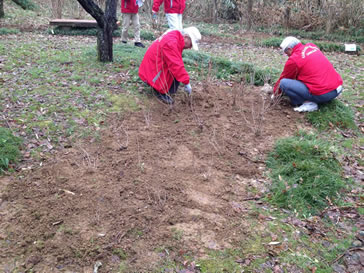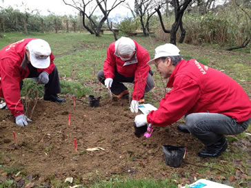 豊国神社参道脇日暮ヶ丘において、多数のメンバーが協力して、120本のアジサイを植樹しました。